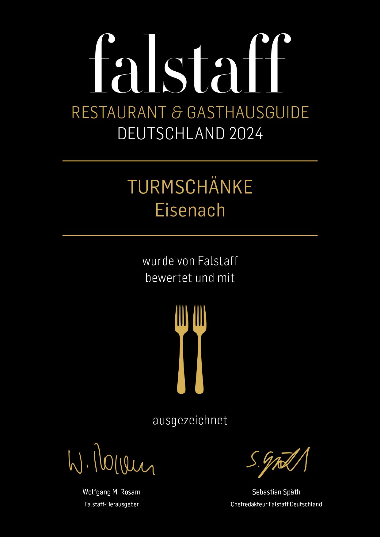Das Weinrestaurant Turmschänke hat im soeben erschienenen Falstaff Restaurant- und Gasthausguide Deutschland 2024 85 Punkte erhalten!